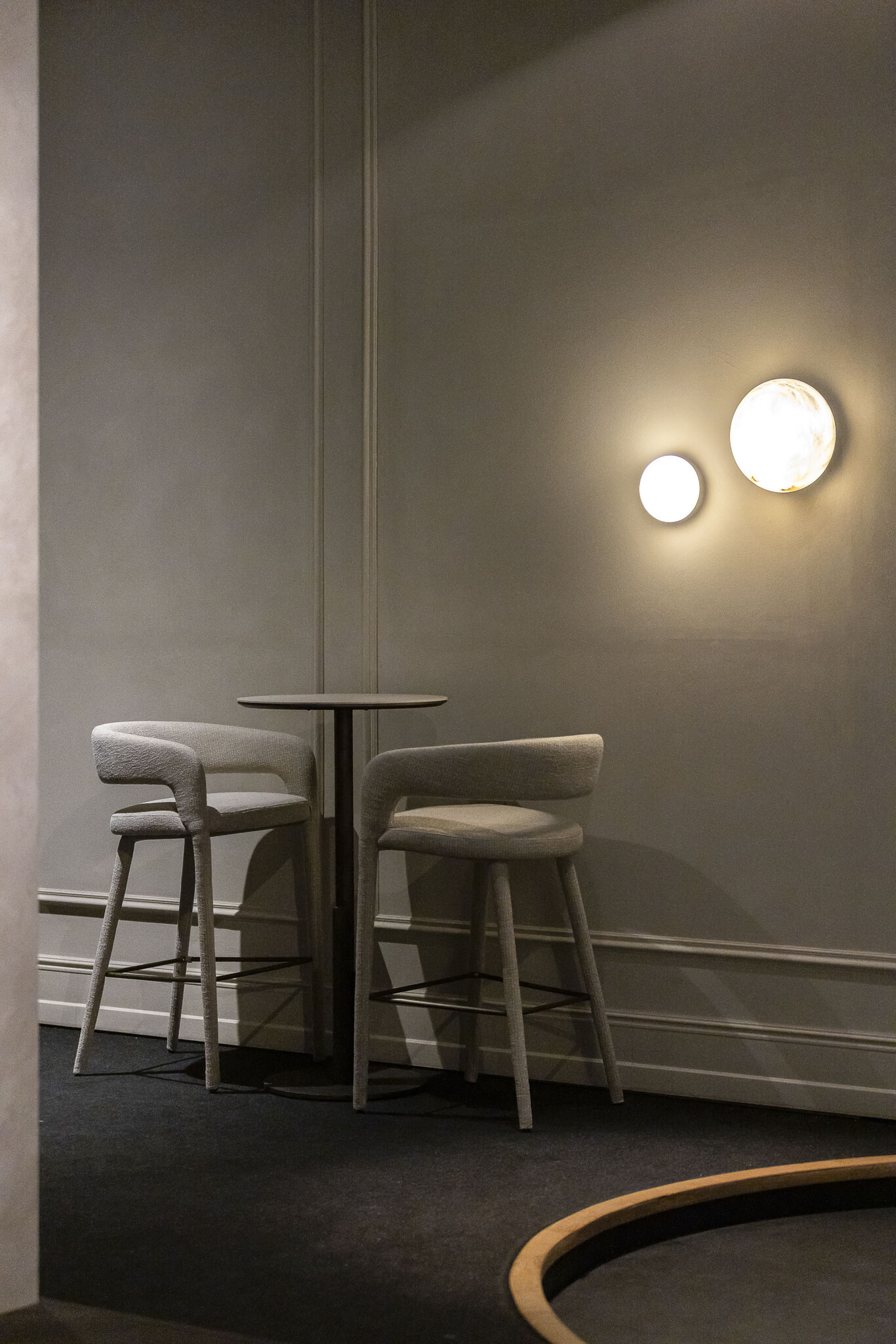 Der runde Bartisch Gia vereint moderne Funktionalität mit einem eleganten Design. Das schlanke Gestell in bronze-Optik sorgt für eine schlanke Optik, und die runde Keramikplatte ist sowohl robust als auch pflegeleicht.