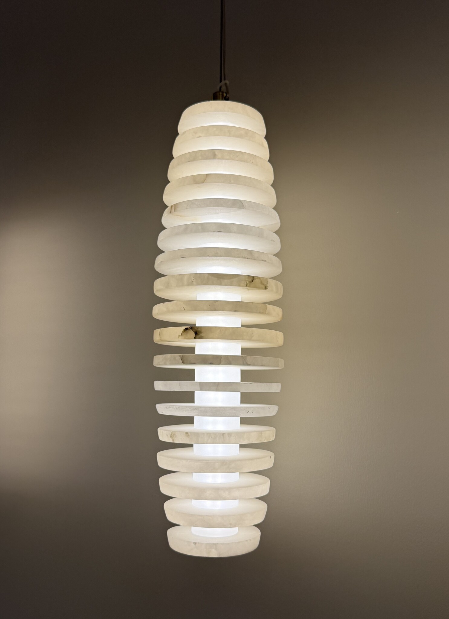 De Jacob Oval hanglamp is gemaakt van lagen gesneden albast en straalt een zacht, diffuus licht uit. Elegantie ten top.