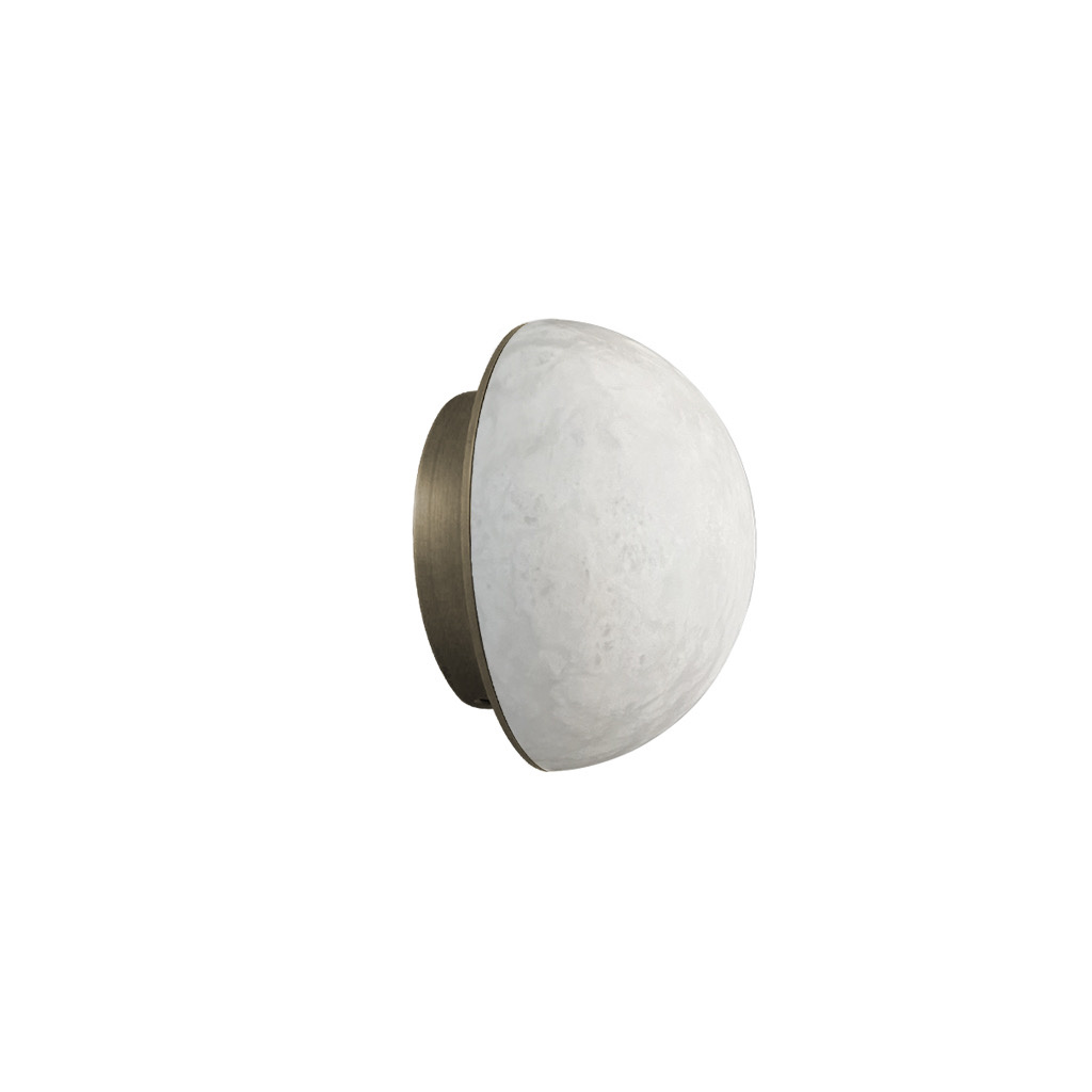 MOON Wall light alabaster S , is a beautifully crafted lighting fixture, a blend of elegant alabaster and an antique bronze finish. It's timeless design with round edges adds a touch of sophistication and warmth to any interior.