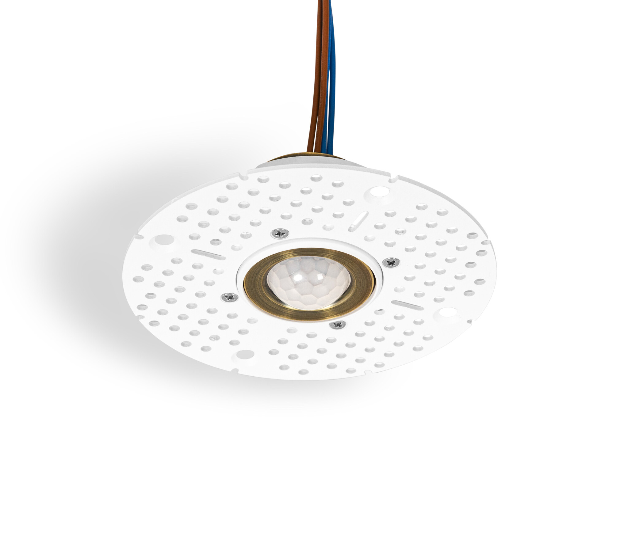 Strakke, trimless bewegingsmelder met luxe bronzen afwerking. Onopvallend als een inbouwspot, maar met slimme detectie. Perfect voor moderne plafonds en high end interieurs.