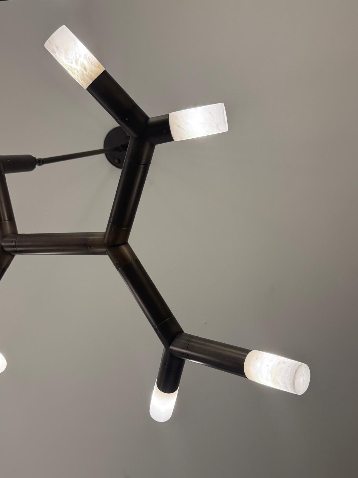 Breng tijdloze elegantie in je interieur met de SCOTT Chandelier in Smoke Bronze met verfijnd alabaster. Deze exclusieve hanglamp combineert sculpturale klasse met zachte verlichting, perfect voor zowel moderne als klassieke ruimtes.
